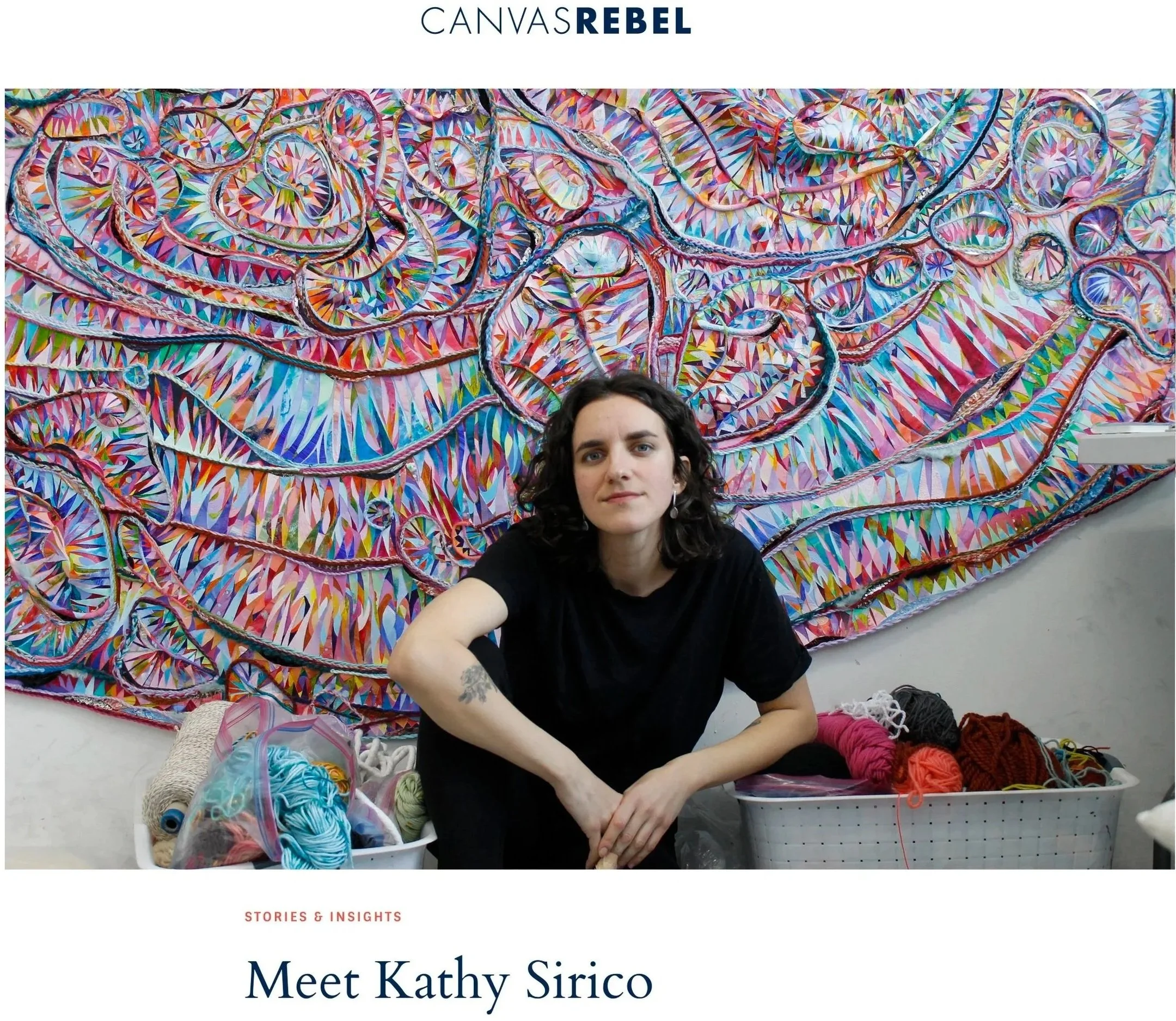 Kathy Sirico is a Brooklyn-based visual artist and poet working abstractly at the intersection of painting, textiles, sculpture, collage, and installation. Environmental advocacy and interspecies connection are at the forefront of her projects.