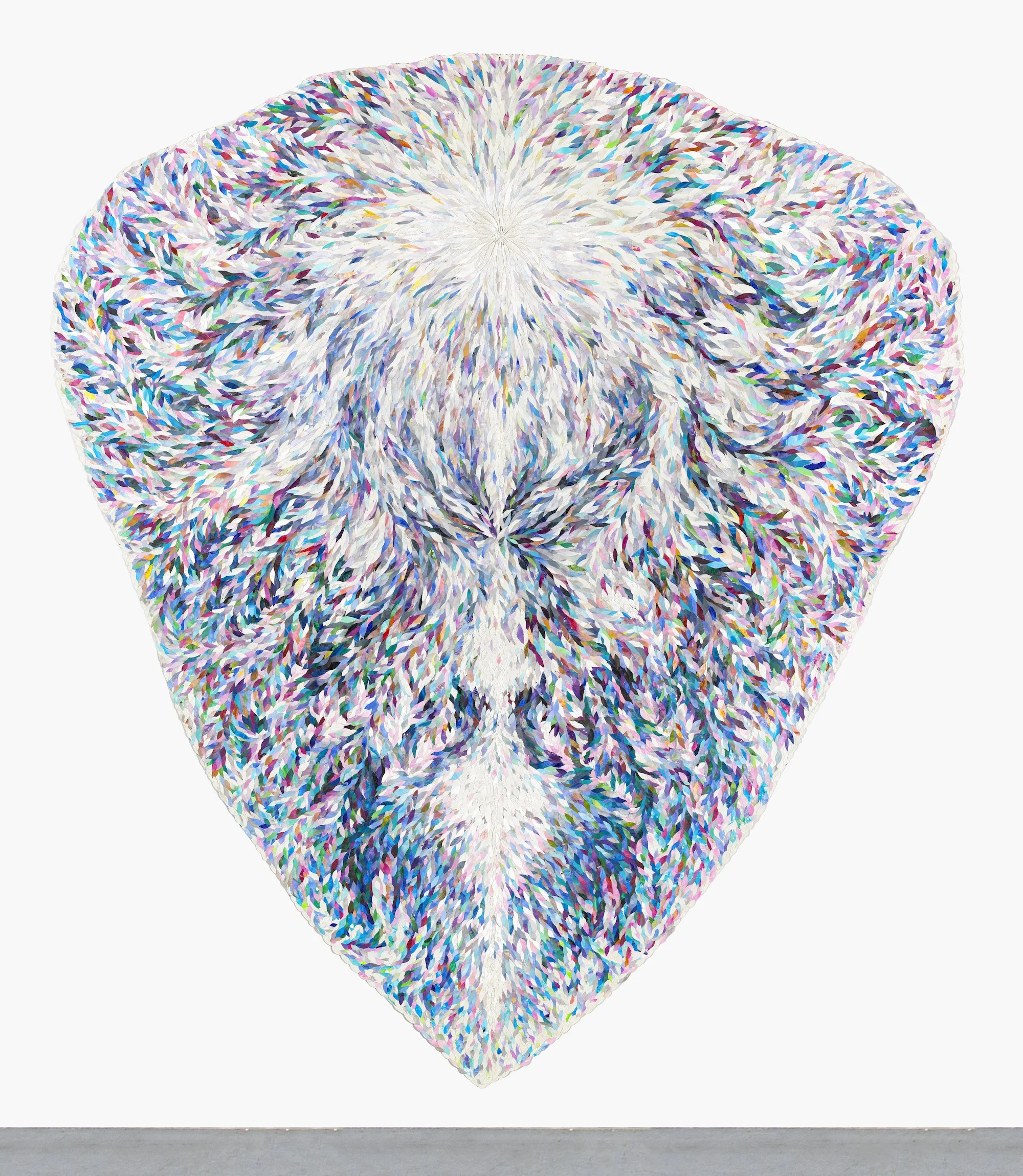 The Eye, 2019, acrylic on canvas, vinyl, satin, adhesive, 144” x 124” x 1"